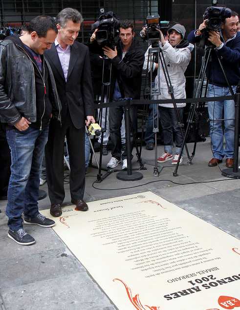 El jefe de Gobierno porteño, Mauricio Macri, inauguró un nuevo baldosón en homenaje al cantante español, en el marco del programa cultural "Baldosas que cantan", que reconoce a figuras de la música popular que dedicaron parte de su obra a nuestra Ciudad