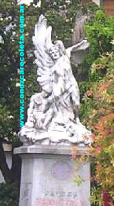El grupo escultórico realizado en mármol de Carrara blanco representa mediante dos figuras tomadas de la mano, La Fatalidad y La Gloria.