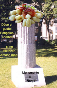 Lo extraño es que dentro de estas trivialidades y en honor al arte culinario, no se les ocurrió hacer un importante monumento al "ñoqui", ponerlo frente al Congreso y de esa manera matarían varios pájaros de un tiro, porque sería un homenaje colectivo a los que allí trabajan.